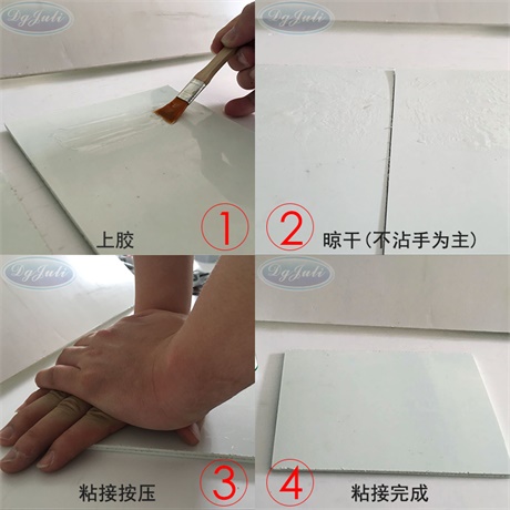 使用JL-6284环保PVC专用胶水前可将被黏物体表面清洁处理,保证被黏物表面干燥、无油、无灰尘。黏接无孔材料时,在被黏物表面均匀涂抹PS专用胶黏剂,